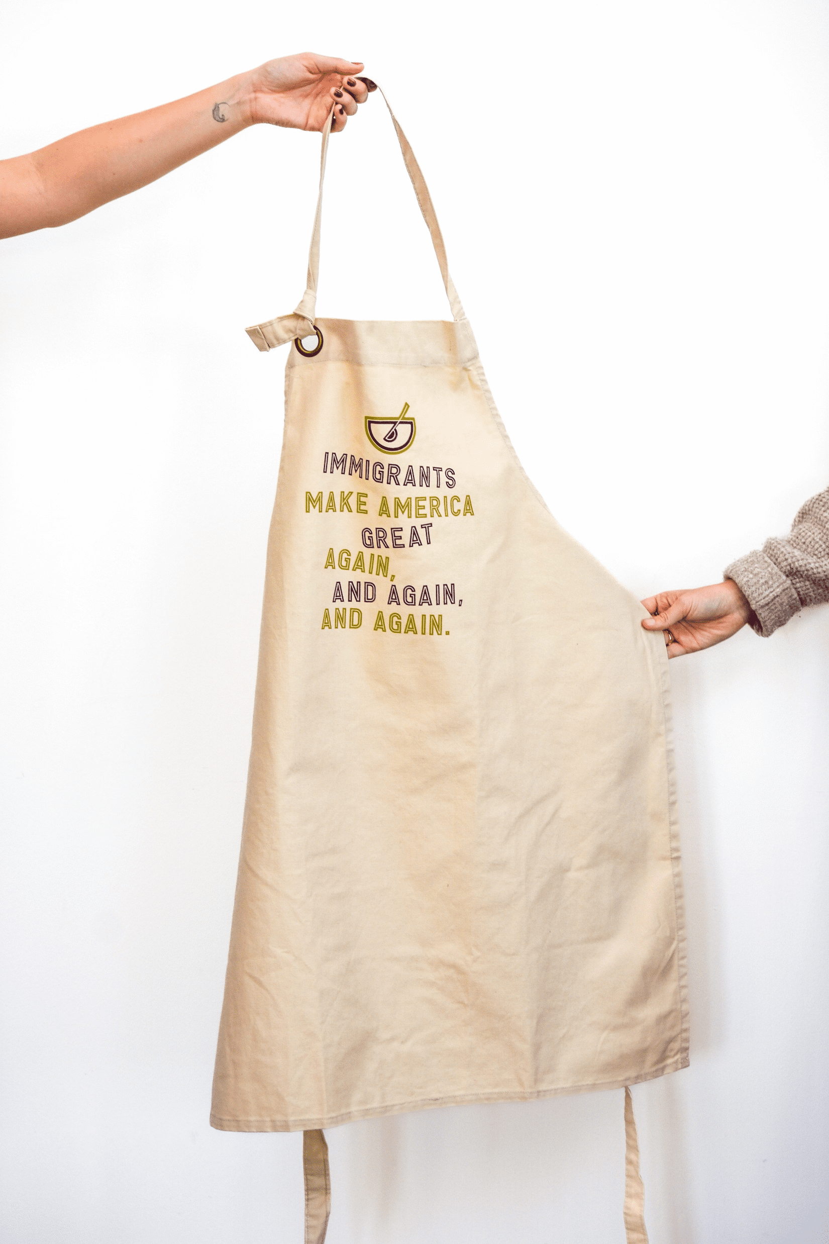 Immigrants have brought flavor to America for centuries. Cook while representing their culinary contributions! One size – unisex.