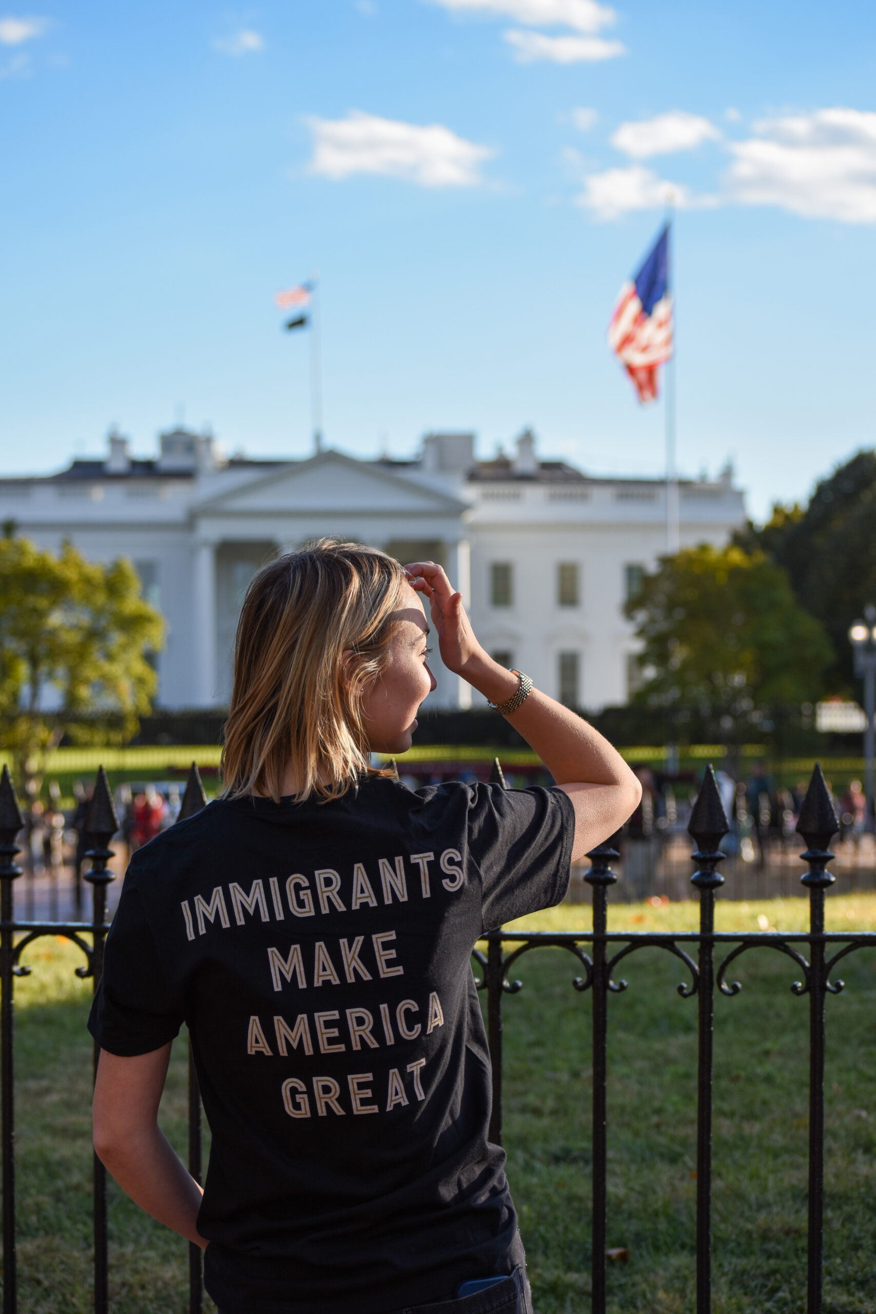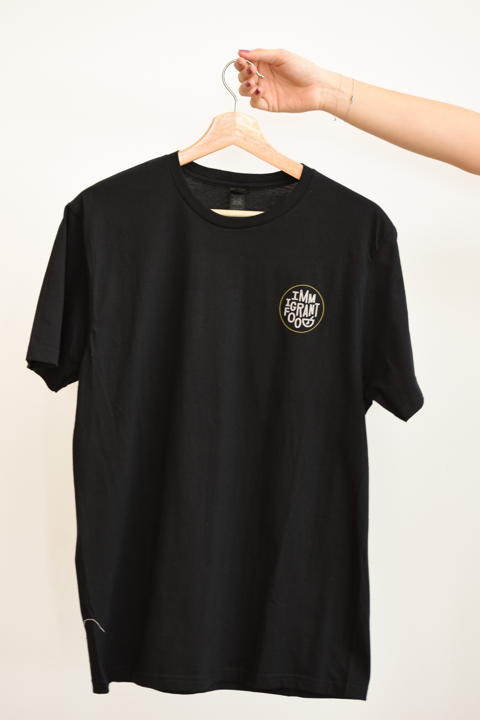 Black unisex short sleeve T-shirt that says “Immigrants Make America Great”.